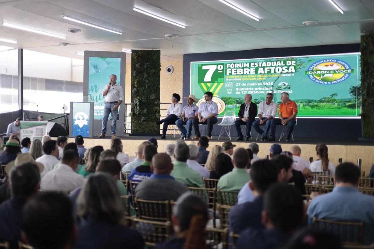 Na terça-feira (27), a Agência de Defesa Sanitária Agrosilvopastoril do Estado de Rondônia (Idaron) promoveu, em Ji-Paraná, o 7º Fórum Rondoniense para Manutenção da Zona Livre de Febre Aftosa Sem Vacinação, evento que integra a programação oficial da 12ª Rondônia Rural Show Internacional (RRSI). O encontro reuniu produtores rurais, representantes políticos e membros de entidades públicas e privadas ligadas ao agronegócio, com foco no fortalecimento da defesa sanitária no estado.