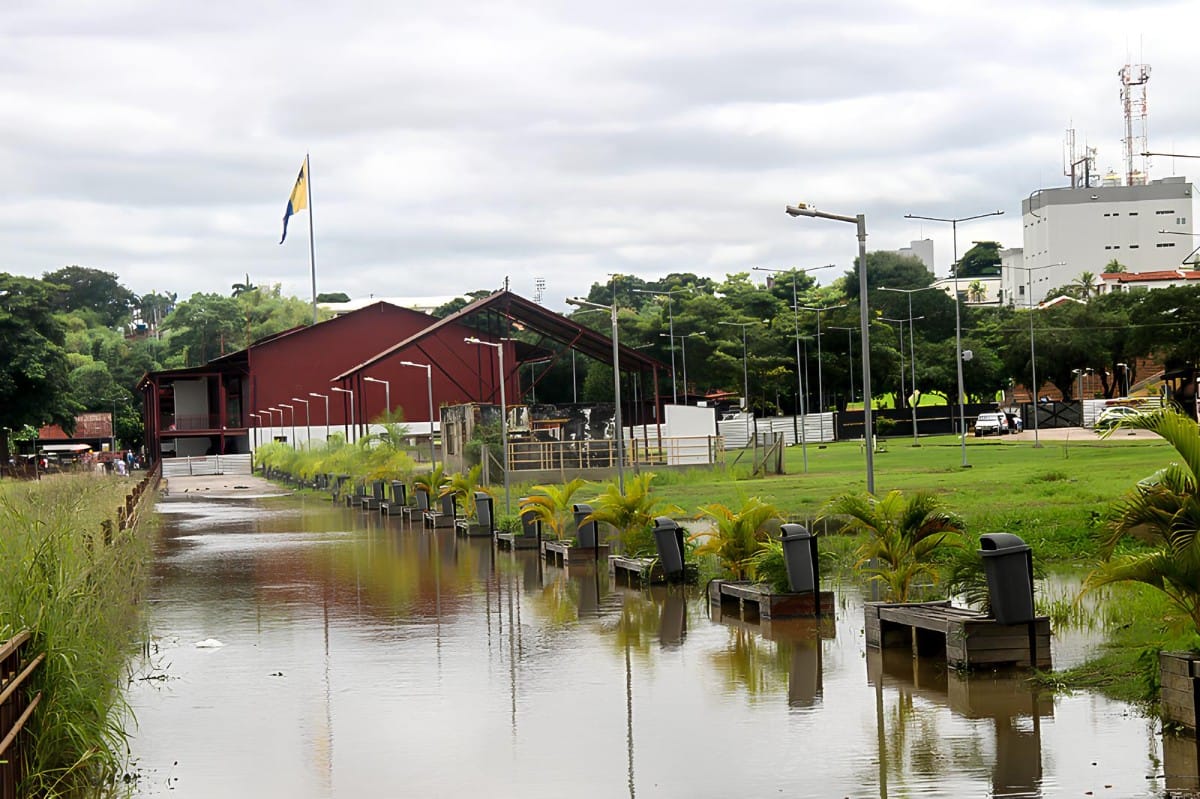 Apesar da estabilidade das últimas horas, oscilando em torno de 16,75 metros, as águas do rio Madeira começaram a invadir a região central de Porto Velho neste domingo (6), como na avenida Rogério Weber, chegando até mesmo na parte alta, no complexo da Madeira Mamoré, não atingindo ainda o píer.