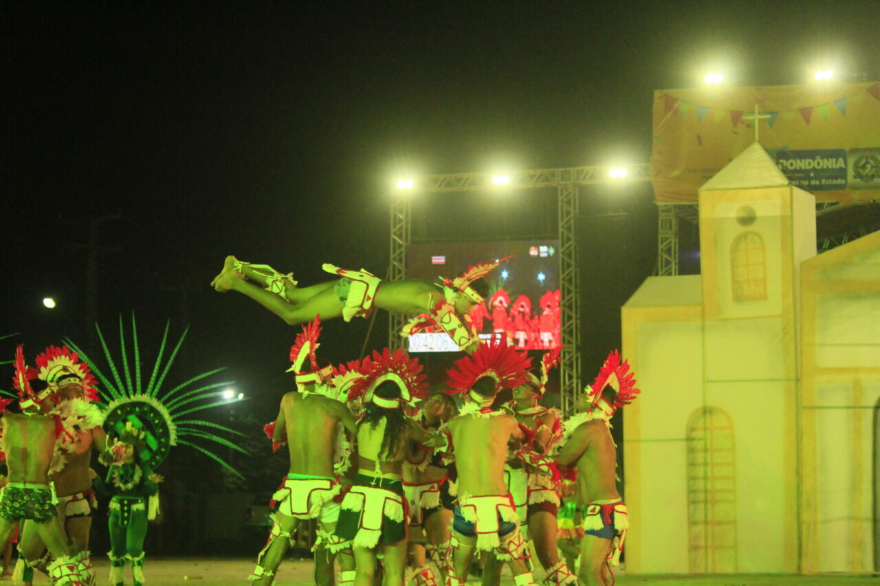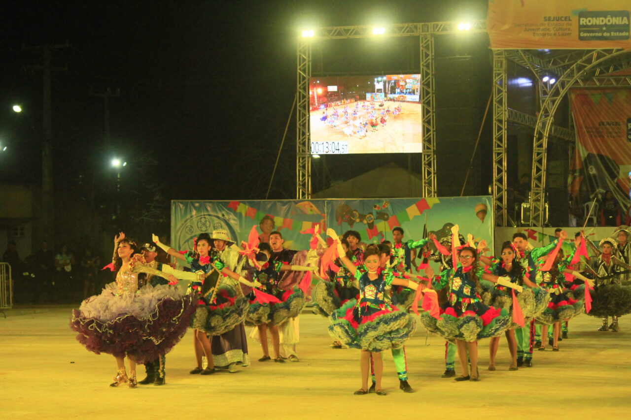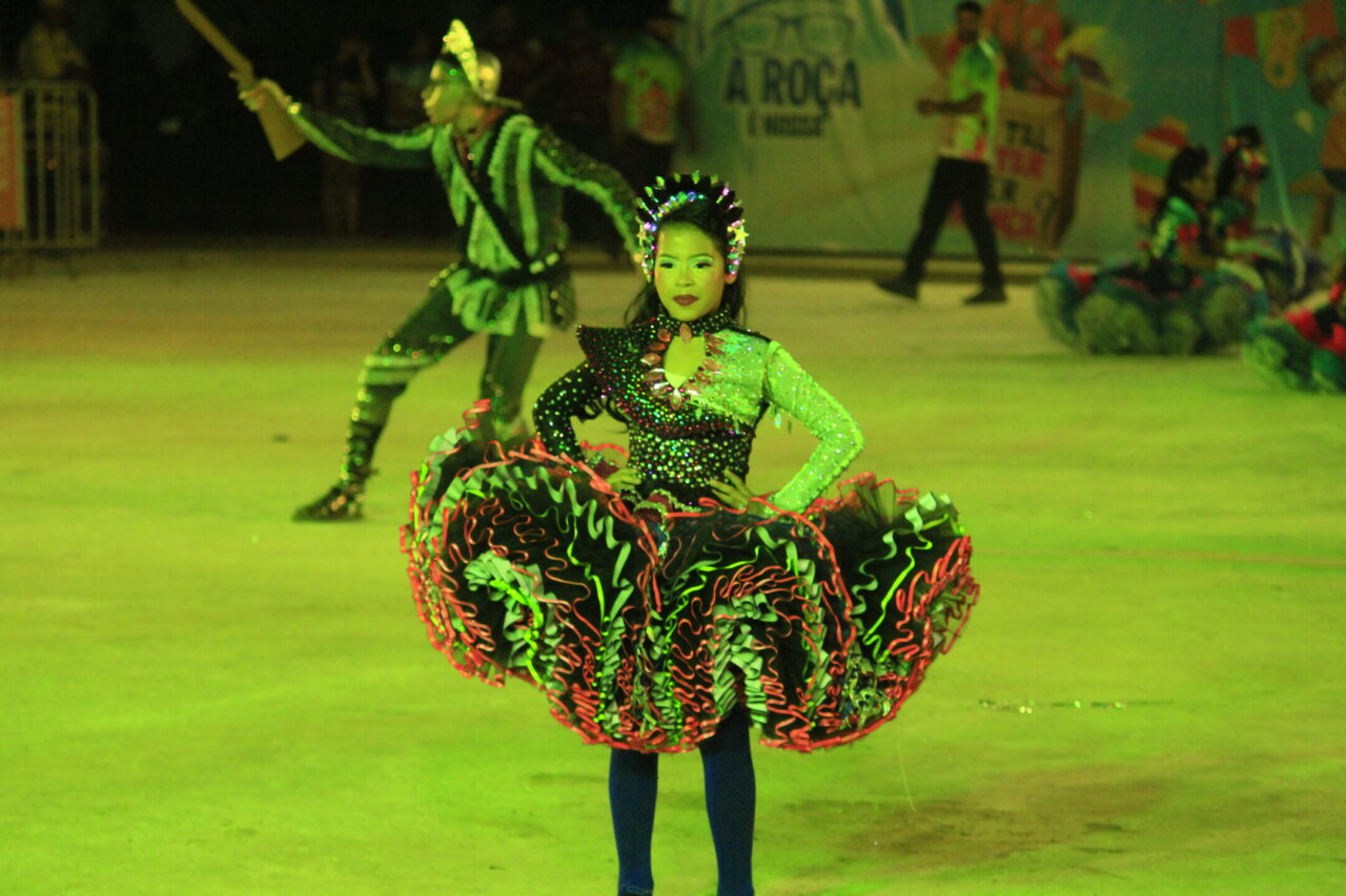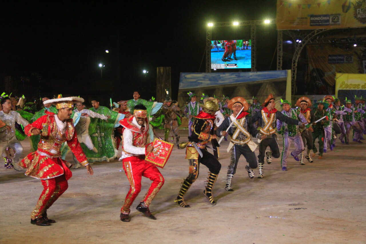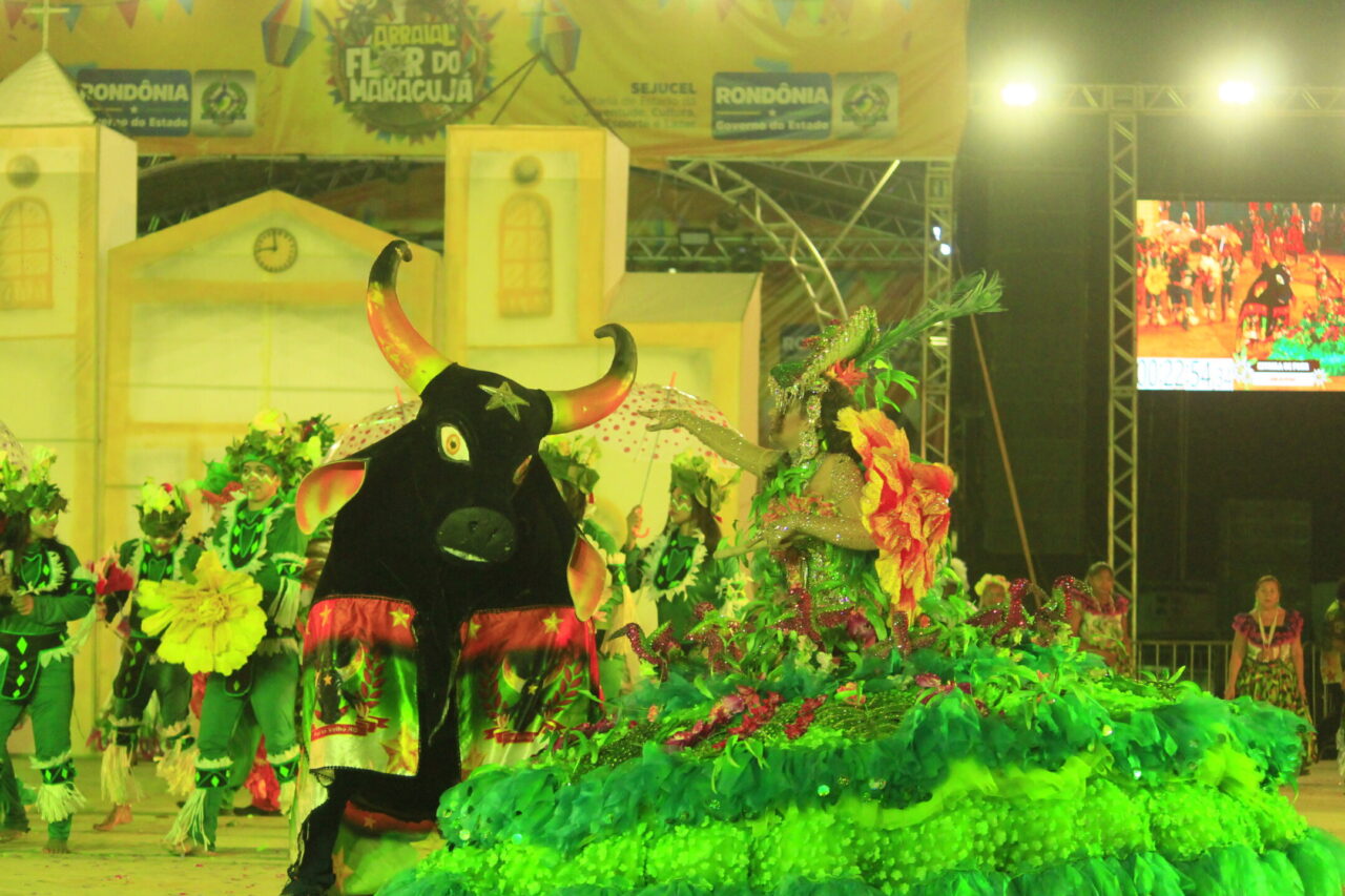 Muitas fantasias, músicas que levantam a plateia das arquibancadas, cores vibrantes e coreografias que tiram o fôlego, tudo misturado em um “caldeirão de alegria”. Todas essas atrações podem ser conferidas no Arraial Flor do Maracujá, que está fazendo a diversão dos portovelhenses e turistas com apresentações de quadrilhas juninas e bois-bumbás, em uma programação que se estende até domingo (30). Na noite de quarta-feira (26), as emoções ficaram por conta de quatro agremiações folclóricas que se apresentaram e agitaram o público presente no Parque dos Tanques.