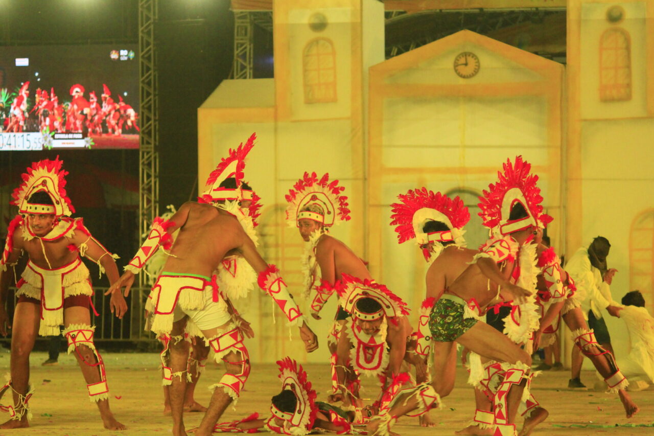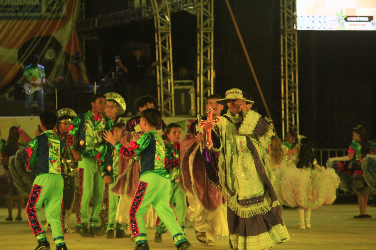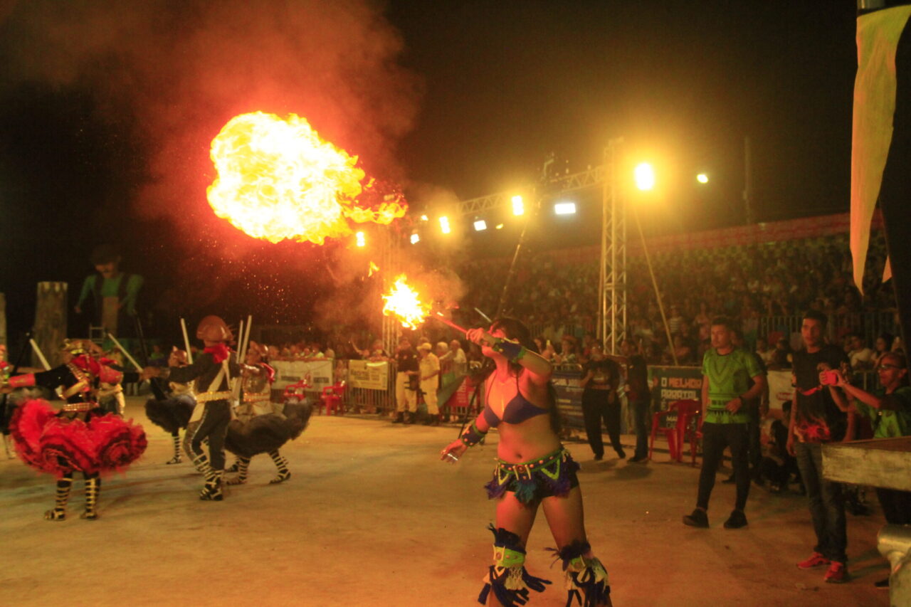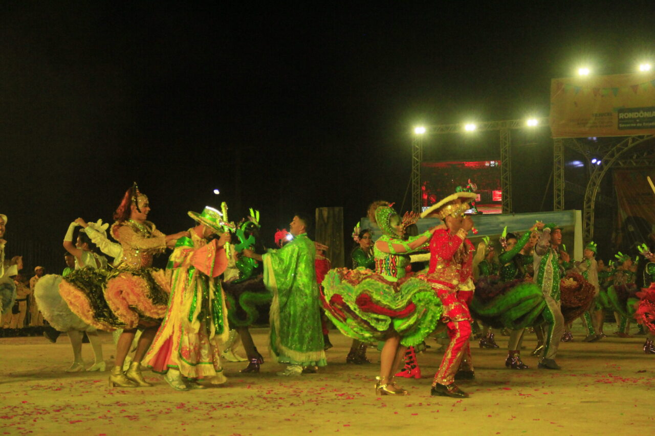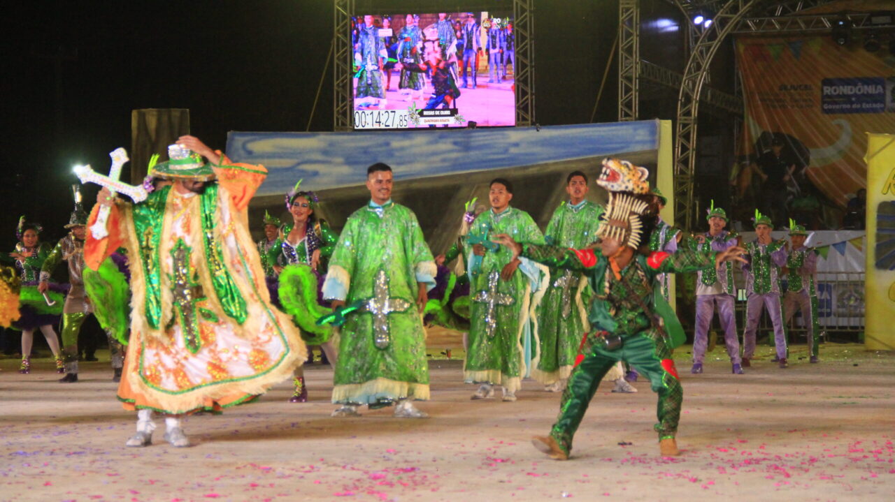 Muitas fantasias, músicas que levantam a plateia das arquibancadas, cores vibrantes e coreografias que tiram o fôlego, tudo misturado em um “caldeirão de alegria”. Todas essas atrações podem ser conferidas no Arraial Flor do Maracujá, que está fazendo a diversão dos portovelhenses e turistas com apresentações de quadrilhas juninas e bois-bumbás, em uma programação que se estende até domingo (30). Na noite de quarta-feira (26), as emoções ficaram por conta de quatro agremiações folclóricas que se apresentaram e agitaram o público presente no Parque dos Tanques.