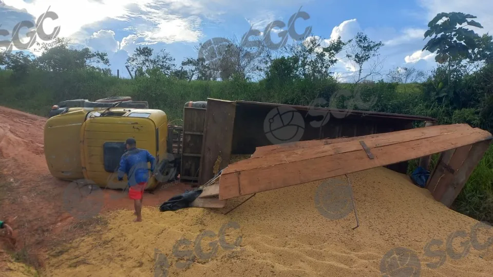 Nessa semana, uma carreta carregada de soja tombou na 3ª linha do Ribeirão, KM 30, no município de Nova Mamoré (RO). O caso ocorreu devido às fortes chuvas que deixaram a estrada “lisa” e vêm dificultando a passagem entre os motoristas.