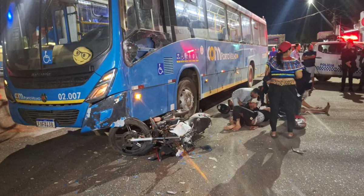 Um acidente de trânsito envolvendo uma motocicleta e o ônibus do transporte coletivo deixou um casal gravemente ferido. A colisão acometeu no cruzamento das ruas João Alfredo da Rocha com Euclides da Cunha, centro a capital.