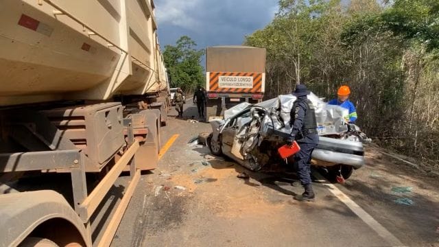 Cinco pessoas sobreviveram a um acidente na BR-364, entre Pimenta Bueno (RO) e Vilhena (RO), na última quarta-feira (19). O carro em que elas estavam foi atingido por um caminhão e acabou prensado contra outro veículo de carga, ficando completamente destruído.