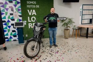 A iniciativa reconhece cooperados que investem em capital social, e Regis foi contemplado com uma moto 0 km. Ele é cooperado da Sicoob Credisul há cinco anos e possui diversos produtos da cooperativa.
