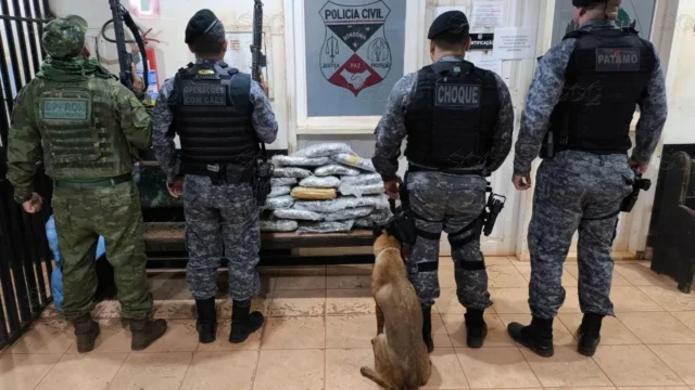 Com o auxílio de um cão farejador, os policiais encontraram o saco contendo 20,348 kg de maconha. O entorpecente foi encaminhado à Delegacia Regional de Polícia Civil de Guajará-Mirim para os procedimentos legais.