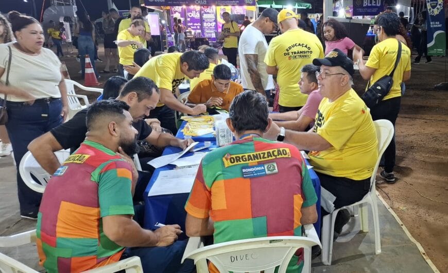 Educação de trânsito para jovens e adultos foi um dos atrativos da 41ª edição do Arraial Flor do Maracujá. No estande do Departamento Estadual de Trânsito (Detran-RO), os visitantes participaram de atividades de conscientização lúdicas, sorteios de bicicletas e capacetes, divulgação de cursos de formação e aperfeiçoamento.