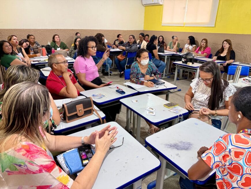 A formação envolve tanto profissionais da rede estadual quanto da rede municipal de ensino.
