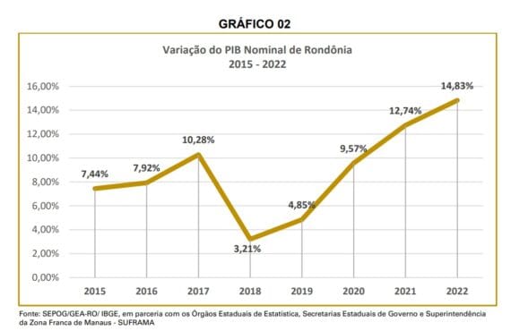 O governador de Rondônia, Marcos Rocha, enfatizou que, os dados mostram um avanço na economia estadual, com a evolução do PIB em valores correntes desde 2015. “Apesar dos desafios econômicos enfrentados no período pandêmico, Rondônia apresentou resiliência, retomando o crescimento em 2021 e acelerando em 2022.”
