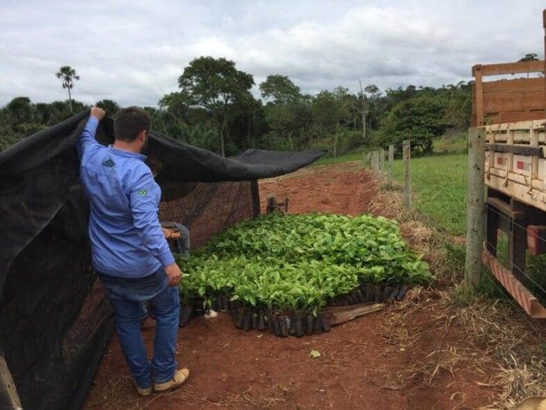 Mudas de café entregues pelo governo de Rondônia na propriedade do agricultor Juraci Grigoleto