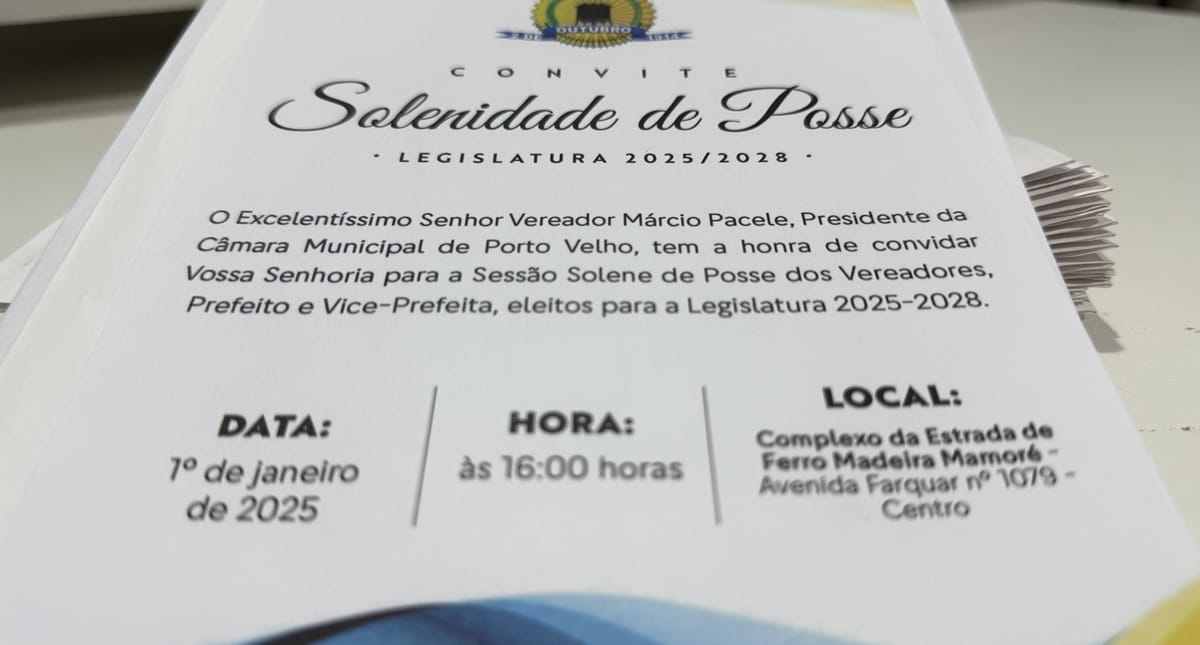 Cerimonial da Câmara Municipal de Porto Velho começou a distribuir os convites aos eleitos.