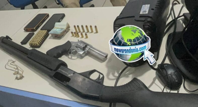 Durante a fuga de um dos criminosos, a PRF abordou o veículo suspeito que seguia em direção a Porto Velho. Na revista, os policiais encontraram uma espingarda, um revólver, dois celulares e R$ 1.500,00 em dinheiro.