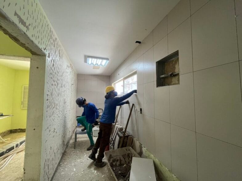 A obra ocorre em diversos espaços do bloco cirúrgico, na área interna do pavilhão, contempla o teto, troca do piso por granilite, manutenção e troca de portas, além de adequações nos lavatórios e torneiras cirúrgicas. As instalações elétricas também estão sendo realizadas, com a troca de tomadas, luminárias e interruptores, e substituição dos bicos de oxigênio medicinal para entrega de medicamentos por nebulização, anestesia e cicatrização de feridas.