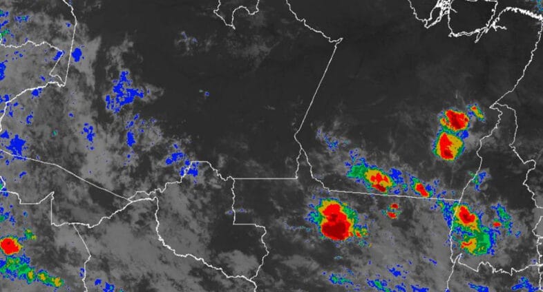 A previsão meteorológica indica a chegada de chuvas com volumes elevados. As tempestades nessas áreas deverão começar por volta do meio-dia de hoje. Nessas regiões, as nuvens colocam o estado na rota de chuvas isoladas, especialmente na capital Porto Velho, onde há alerta para pancadas.