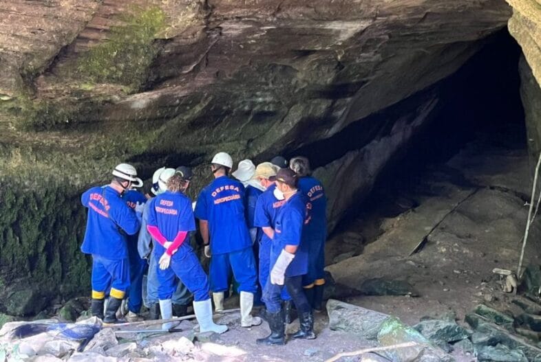 Profissionais da Idaron em busca de abrigos de morcegos em área de mato