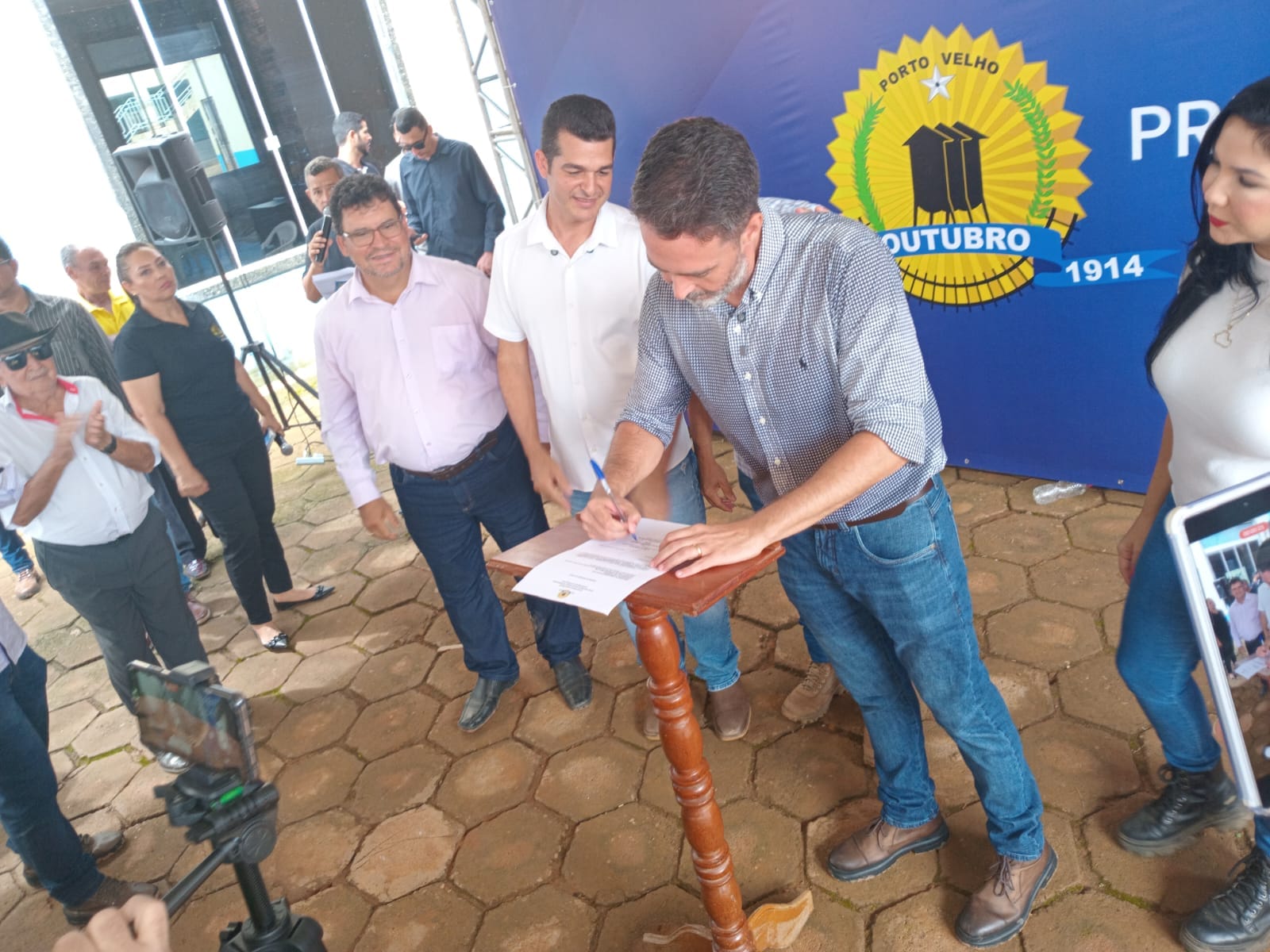 Estiveram na cerimonia de assinatura o prefeito de Porto Velho Léo Moraes, o vereador Adalto de Bandeirantes, os deputados federais Cristiane Lopes e Coronel Chrisóstomo, Jaime Gazola Filho secretário de saúde, Geraldo Sena Neto secretário de obras, Lauro Fernandes diretor operacional da Caerd, Valdecir Ozório administrador do distrito, moradores, estudantes, e empresários.