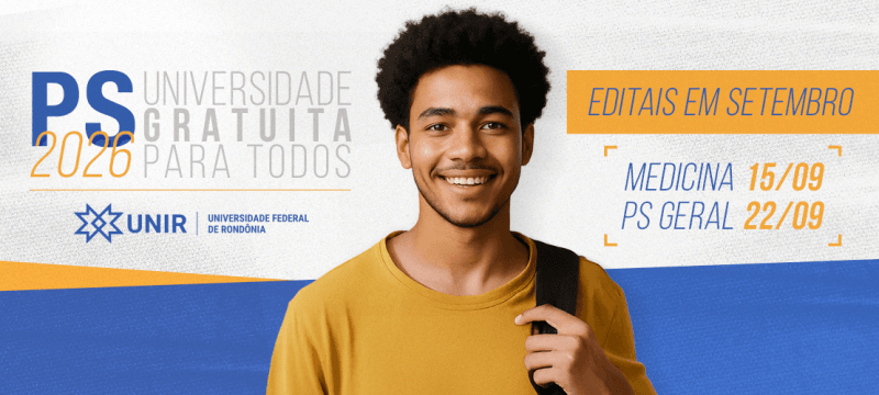 Editais do PS UNIR 2026 – Neste ano, o Processo seletivo da UNIR  foi dividido em quatro editais: dois editais exclusivos para o curso de Medicina, que já foram publicados em 15/09 (saiba mais), e dois editais do PS Geral (acesse aqui), que incluem todos os demais cursos presenciais e a distância ofertados pela UNIR. Todos os editais compartilham o mesmo cronograma de inscrições e seleção, e os candidatos que atenderem aos critérios estabelecidos por cada um deles poderão se  inscrever em até quatro editais.
