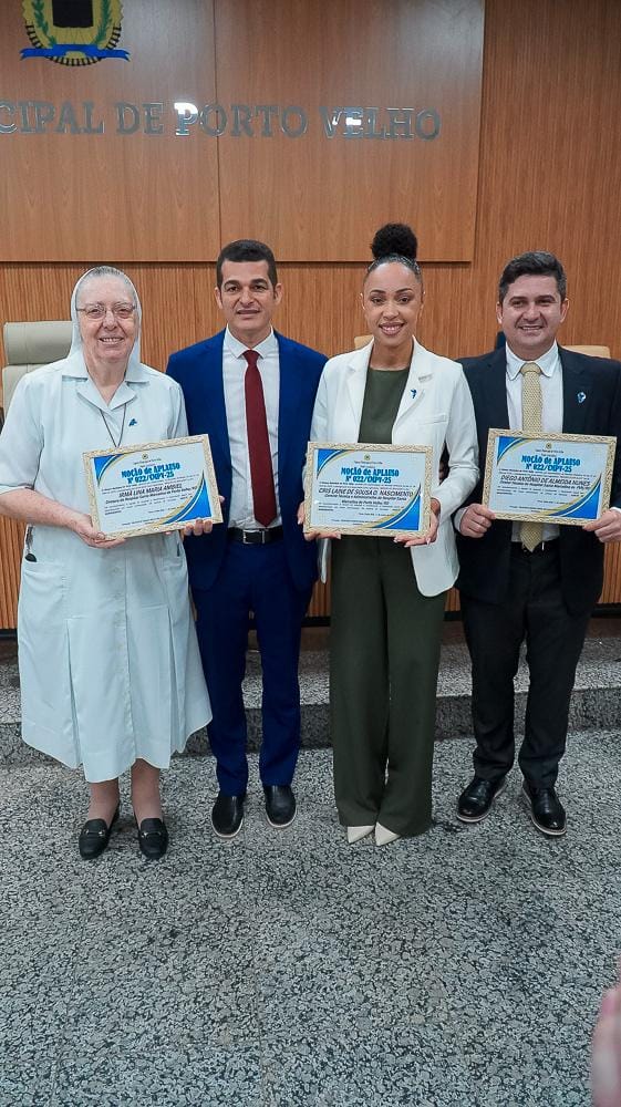 Reconhecimento público foi entregue às irmãs religiosas e à direção da unidade hospitalar durante cerimônia no plenário da Câmara Municipal de Porto Velho.